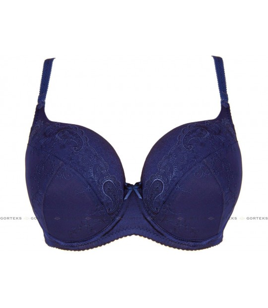 Klasyczny i elegancki biustonosz usztywniany doskonale podtrzymuje biust. Wykonany z gładkiej dzianiny ozdobionej pięknym haftem. Między miseczkami delikatna kokardka.